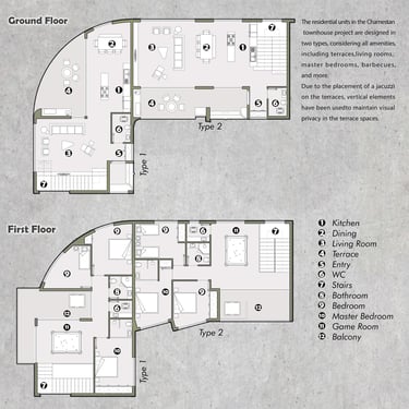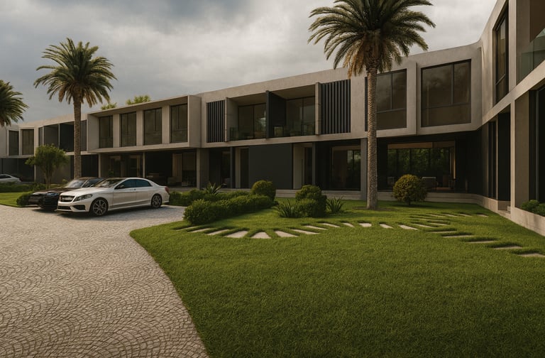 The design concept emphasizes the creation of generous green areas and landscaped surroundings, enhancing both functionality and quality of life within the development. Each villa unit offers 200 m² of living space, fully equipped with modern amenities and complemented by shared community areas, including a park.