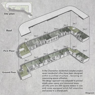 Designed with a focus on maximizing spatial efficiency, the Henza project integrates seven residential villas into a single, cohesive architectural form.