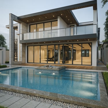 The core concept of the JAN Mansion design is the fusion of indoor and outdoor spaces. JAN Mansion is a luxurious modern villa featuring 3 master bedrooms, a swimming pool, a 20 m2 terrace overlooking the garden, a pond, a barbecue area, fountaın, 8 separate parking spaces, a 50 m2 independent caretaker's quarters, and all the amenities necessary for an unparalleled stay.