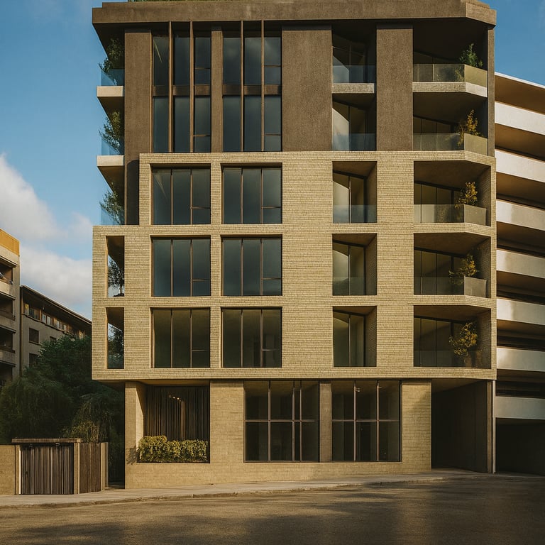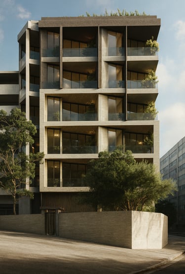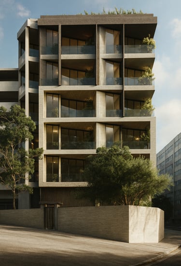This project, located in Tehran, features a reinforced concrete structure with waffle slab ceilings. The building consists of five residential floors, with three units on each floor. The total built-up area is approximately 3,000 square meters on a land plot of 600 square meters.